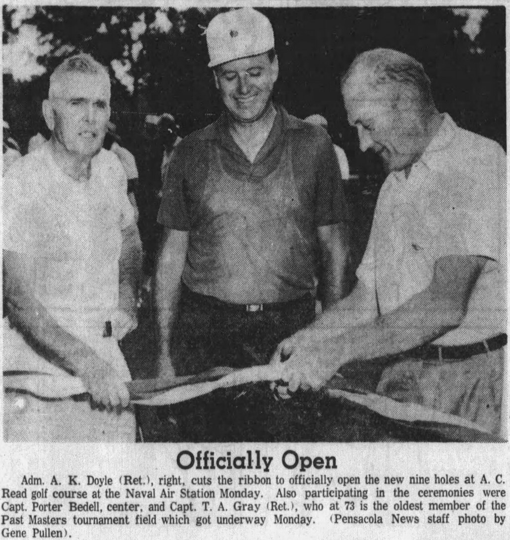 In 1954, Naval Air Station Pensacola (NASP) held a ceremony to dedicate and name the golf course in honor of Rear Admiral Albert Cushing Read. In attendance was Admiral Read and his wife Bess, who were both avid golfers. He was a former base commander at Naval Air Station Pensacola from 1940 to 1942.
