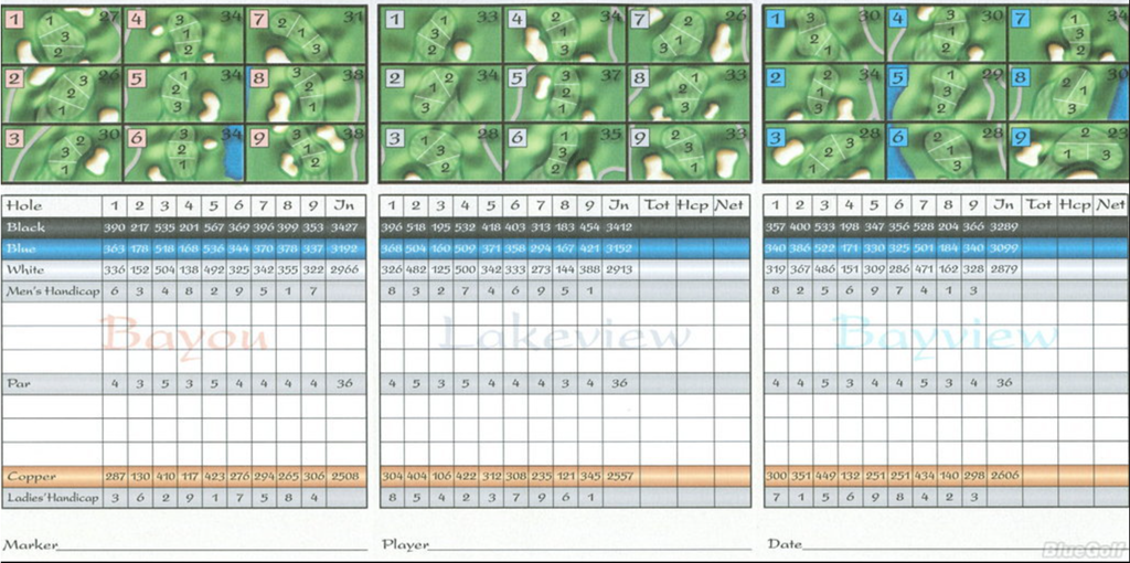 In the early 1990’s, nine more holes were added to the regulation course. They separated the 27 holes into three distinct 9-hole layouts.