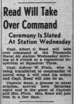 Read was a graduate of the first aviator class at NASP. After he soloed in 1915, he was designated Naval Aviator No. 24. In 1918, Read married Elizabeth “Bess” Anderson Burdine in Miami. Bess’s father, William, was the founder of the Florida department store chain named Burdines.